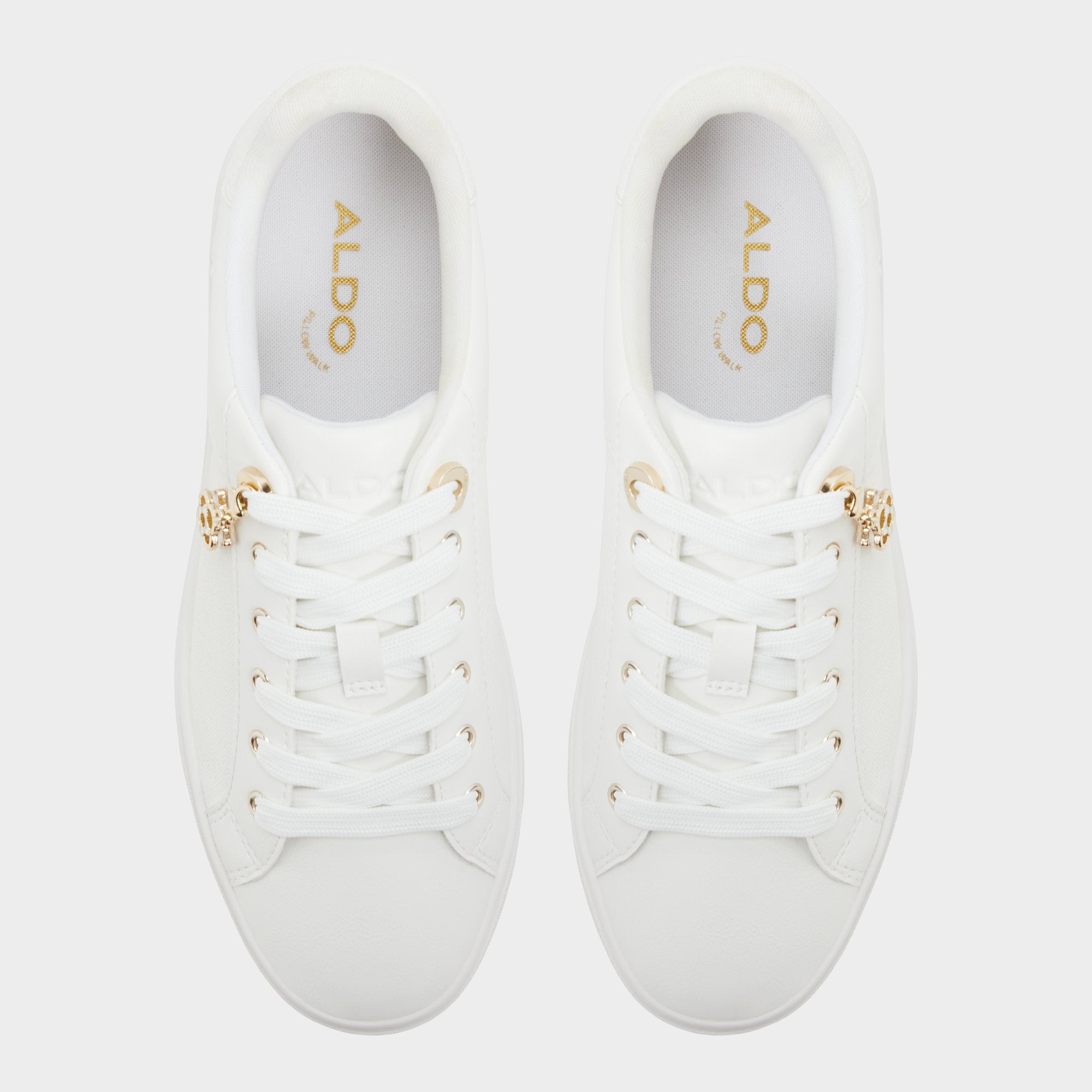Smooth leather and textured canvas fuse on a cup-sole sneaker, finished with a gold-tone charm that catches light and makes everyday errands feel a little more playful. Pair with denim crops for city chills, or slip beneath a floaty midi when coffee runs turn to after-work strolls.
