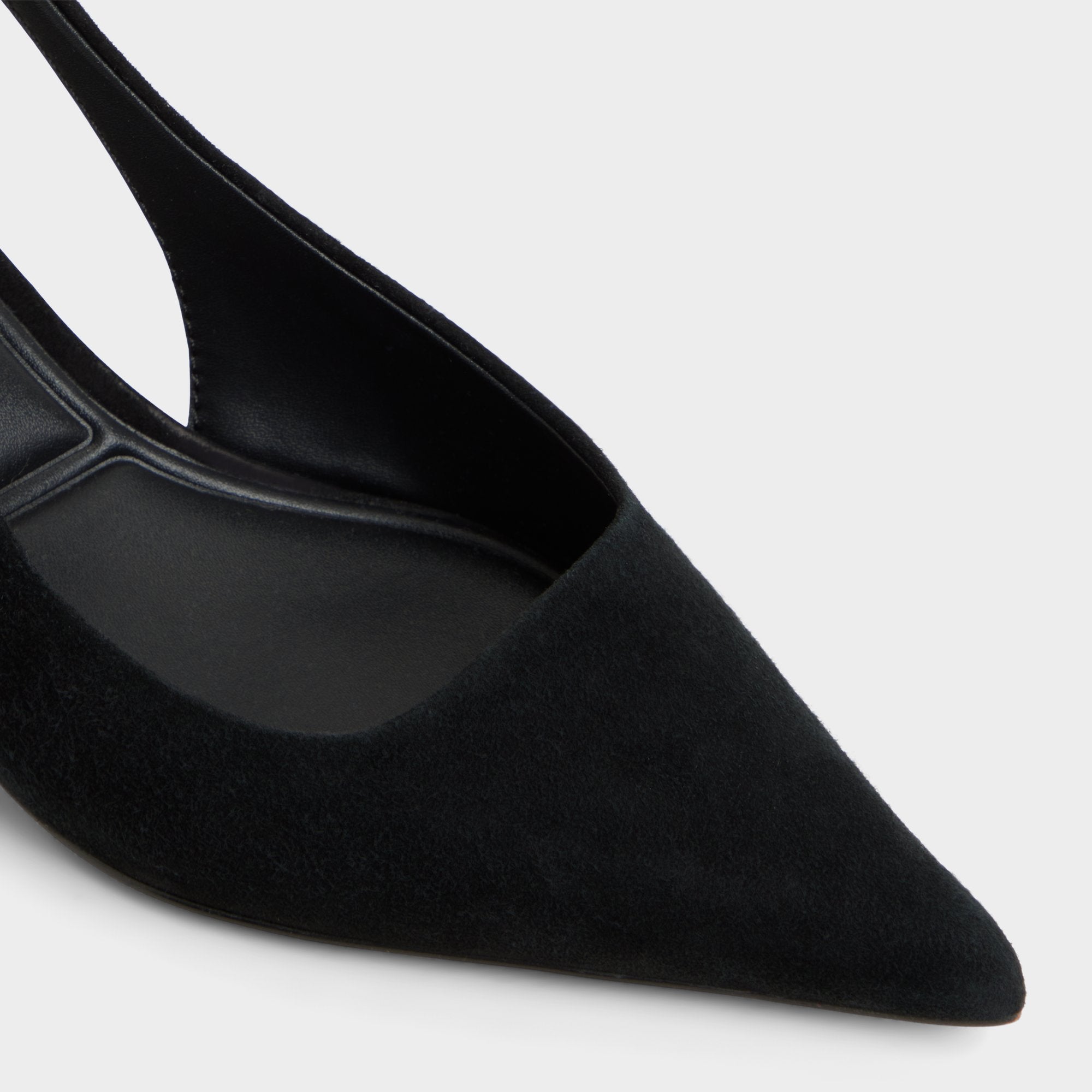 Velvety midnight depths wrap around pointed slingbacks, lending a hush of luxury and a lengthened line that makes every city stride feel deliberate and poised. Pair with cropped trousers for boardroom polish, or slip on under a satin slip as nightlife glows and the skyline lights up.