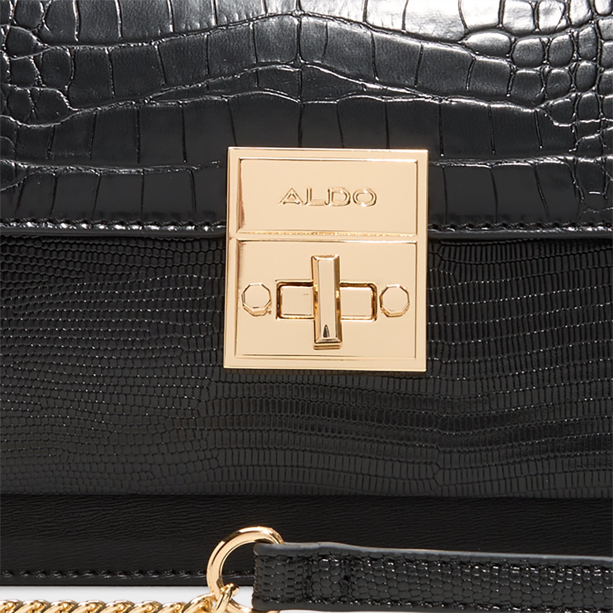 Glossy croc-embossed leather pairs with matte canvas panels on this structured mini, featuring a polished twist-lock and removable chain strap that shifts it from sophisticated to cross-body ease. Carry with a blazer and wide-leg trousers for boardroom poise, or sling over slip dress nights to complete the look.