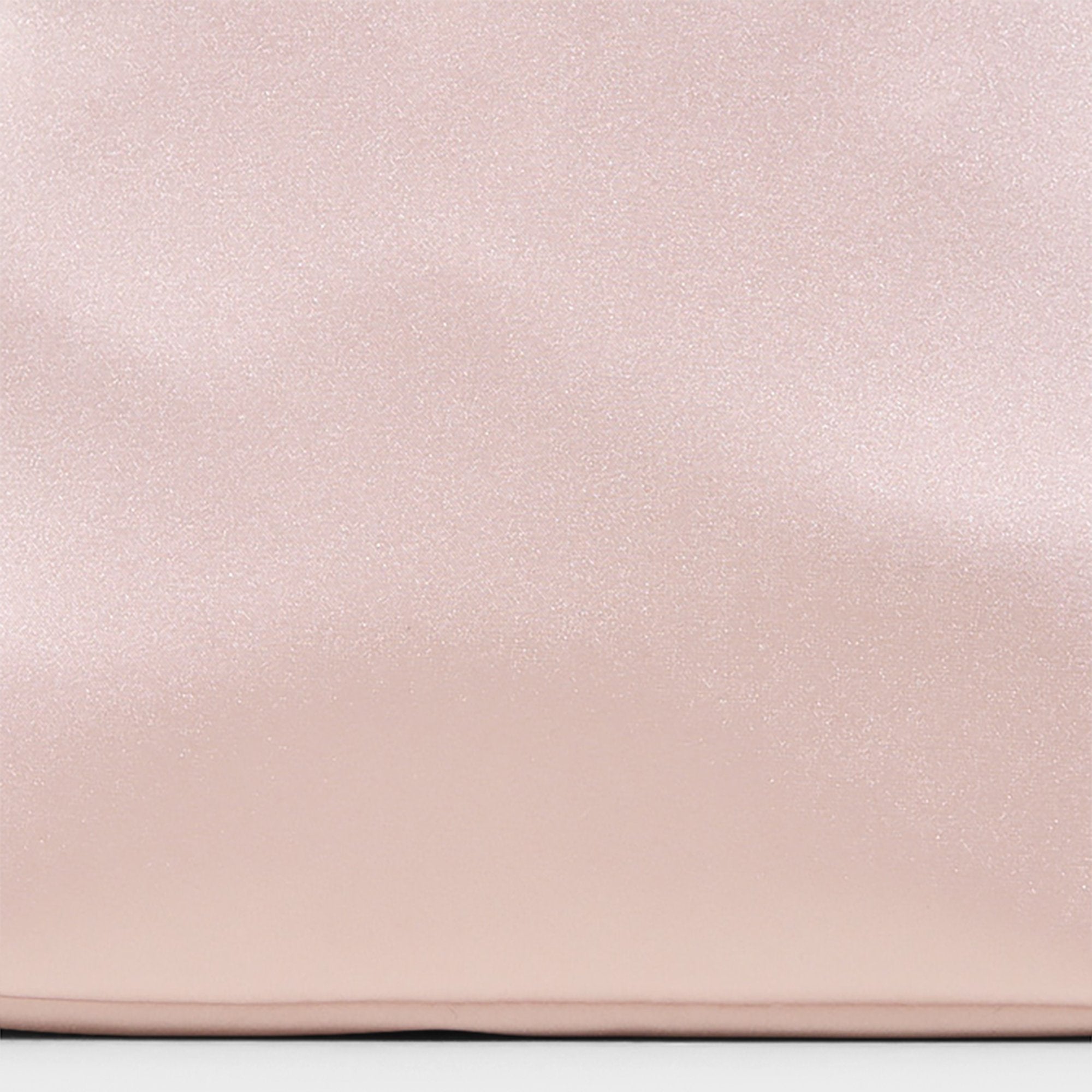 Soft blush silk drapes a mini carryall with ballerina grace, while a playful scrunchie top handle gives a comfy grip and silver-tone zips keep must-haves secure for city mornings, rooftop sunsets, and gallery-hopping nights. Carry it with a light slip dress for brunch, or sling it over denim for weekend strolls.