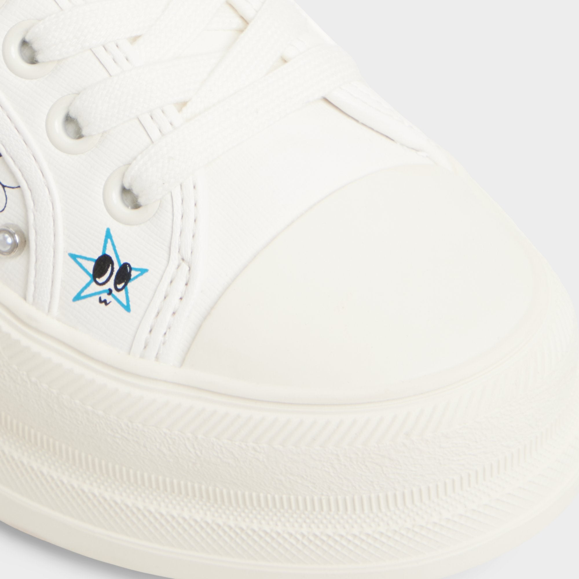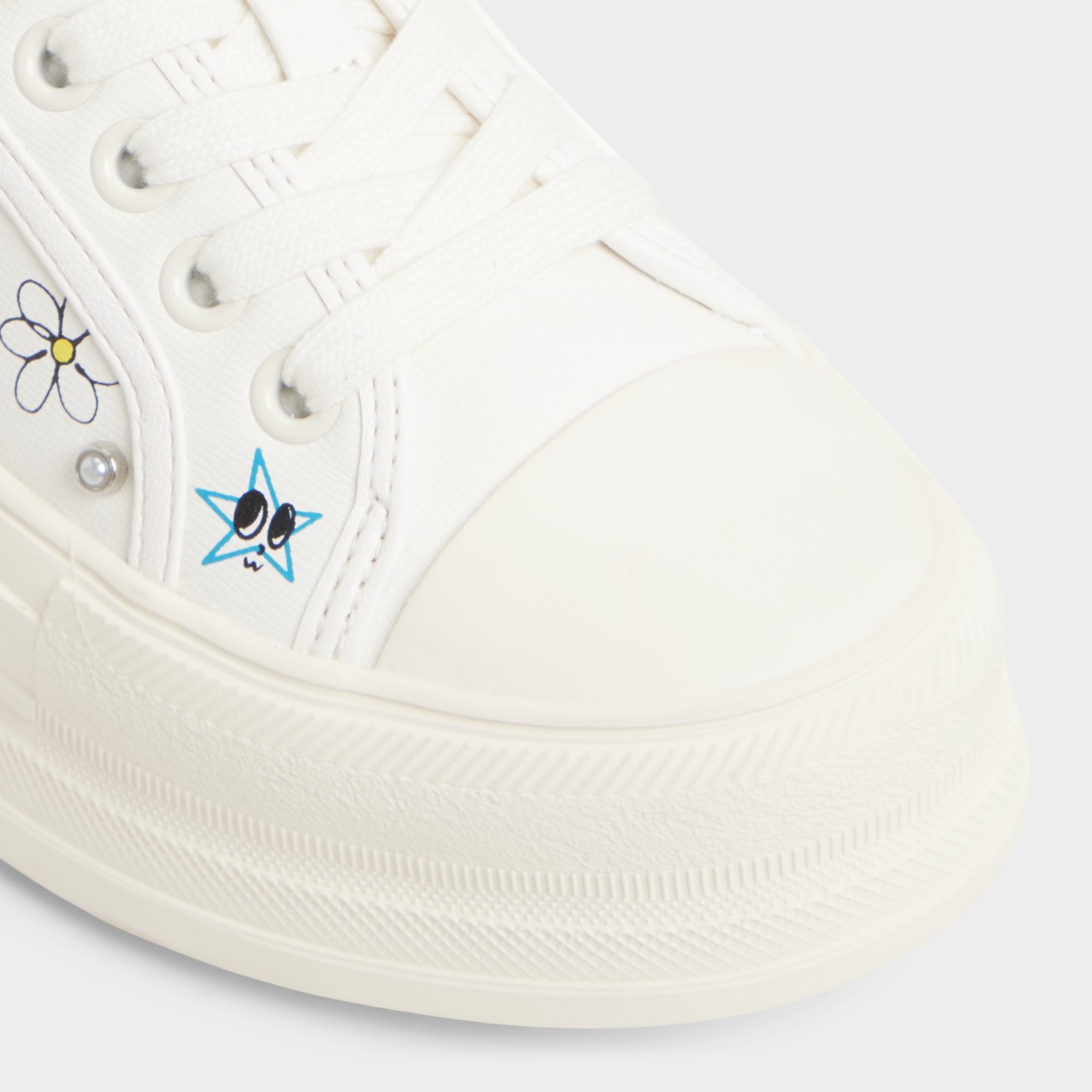 Hand-drawn doodles burst over crisp white canvas on this chunky cup-sole low-top, turning it into a playful diary page that hugs feet softly from sunrise commutes to midnight grocery runs. Pair with frayed denim for cafe catch-ups, or ground a swingy mini dress when festival sunsets stretch long.