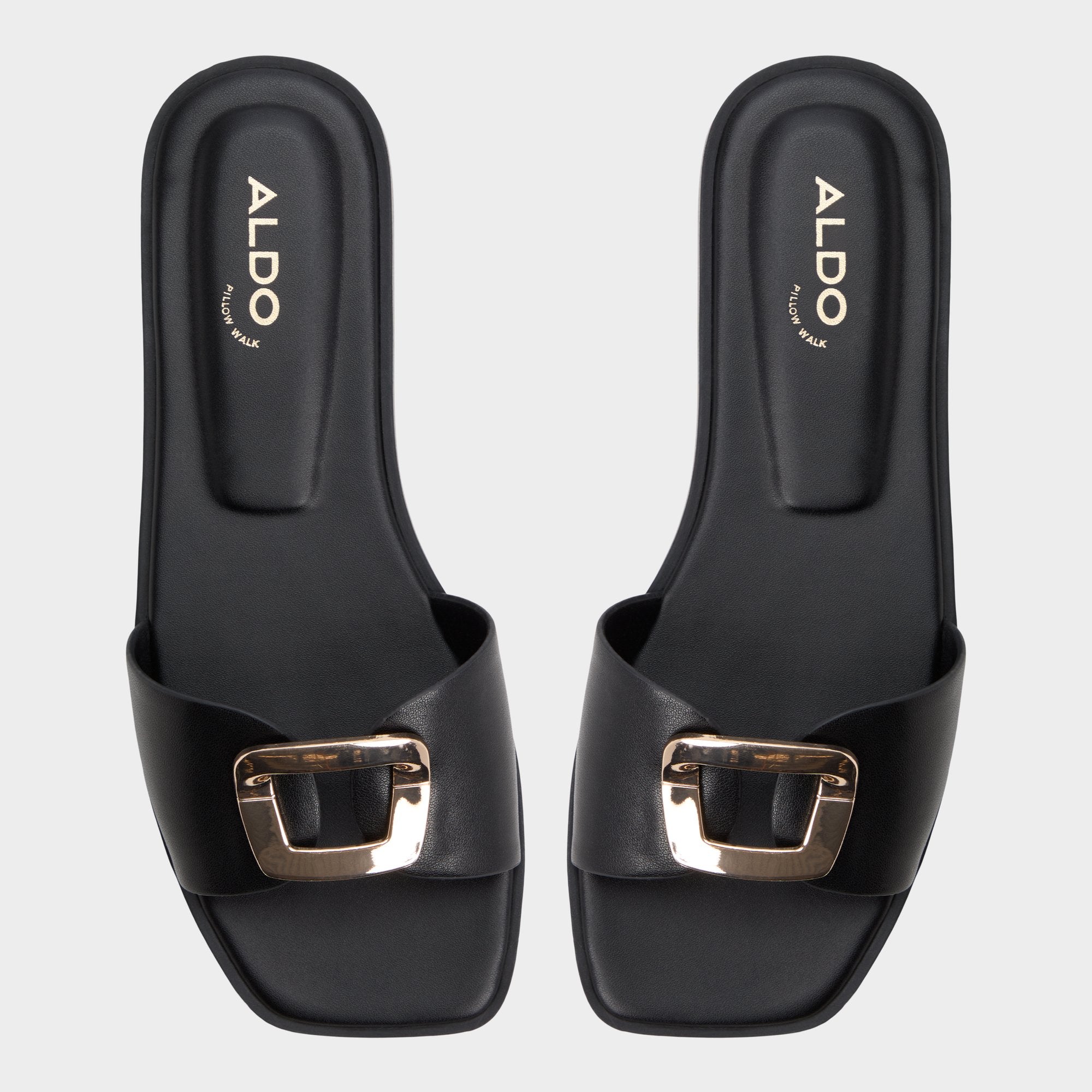 Supple black leather hugs the foot with a clean single strap, a gleaming buckle catching light as a padded square footbed steadies every step from busy elevators to late-night strolls. Pair with cropped linen trousers for brunch, or style it under a sleek slip dress for rooftop cocktails.