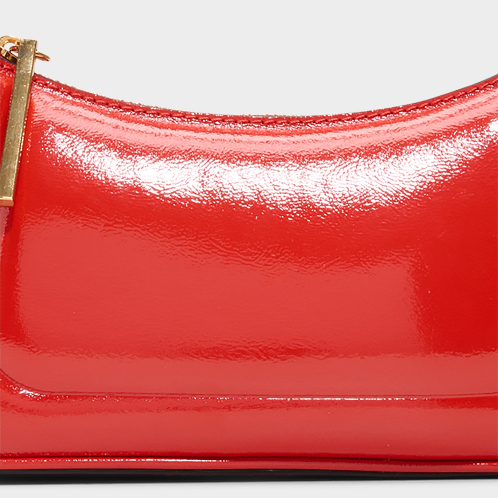 High-gloss patent leather in unapologetic red turn this baguette into a head-turning statement, gleaming with gold hardware and a sculpted silhouette that catches every glance as you move through city lights. Carry it with a sharp blazer for work drinks, or sling it over a slip dress for midnight parties to finish the look.